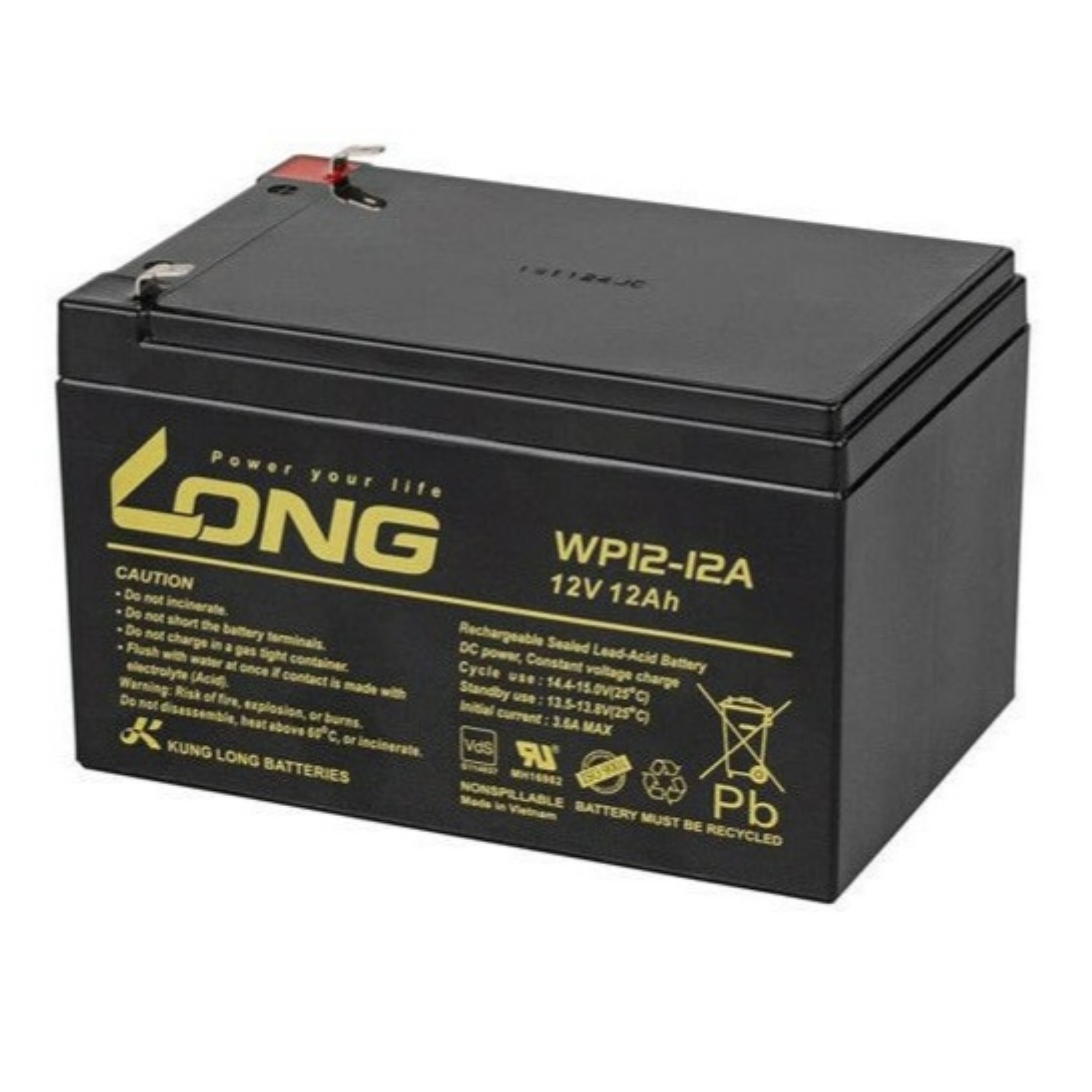 KUNG LONG یک شرکت تولید کننده باتری است که باتری سیلد اسید قابل شارژ برای سیستم های برق اضطراری یو پی اس و سایر مصارف باتری های سیلد اسید تولید می کند. باتری 12 ولت 12 آمپر مناسب ماشین شارژی و ups این شرکت تولید کننده موفق باتری یو پی اس LONG دارای استاندارد های جهانی SO9001، ISO14001 و OHSAS18001 است. لازم به توضیح است این باتری ها ساخت کشور ویتنام می باشد. خط تولید باتری یو پی اس لانگ همه انواع باتری سیلد اسید را پوشش می دهد. مصارف این باتری درماشین های شارژی، اسباب بازی های شارژی،دوچرخه شارژی،اسکوتر برقی، برق اضطراری و چراغ های صنعتی و … میباشد. برای افزایش طول عمر این نوع باتریها از لحیمکاری ترمینالهای باتری خودداری نمودهو همچنین اگر به مدت طولانی از دستگاه خود استفاده نمیکنید،باتری را از دستگاه جدا نمائید.وزن تقریبی آن در حدود محصول فوق از کیفیت بسیار خوبی برخوردار است