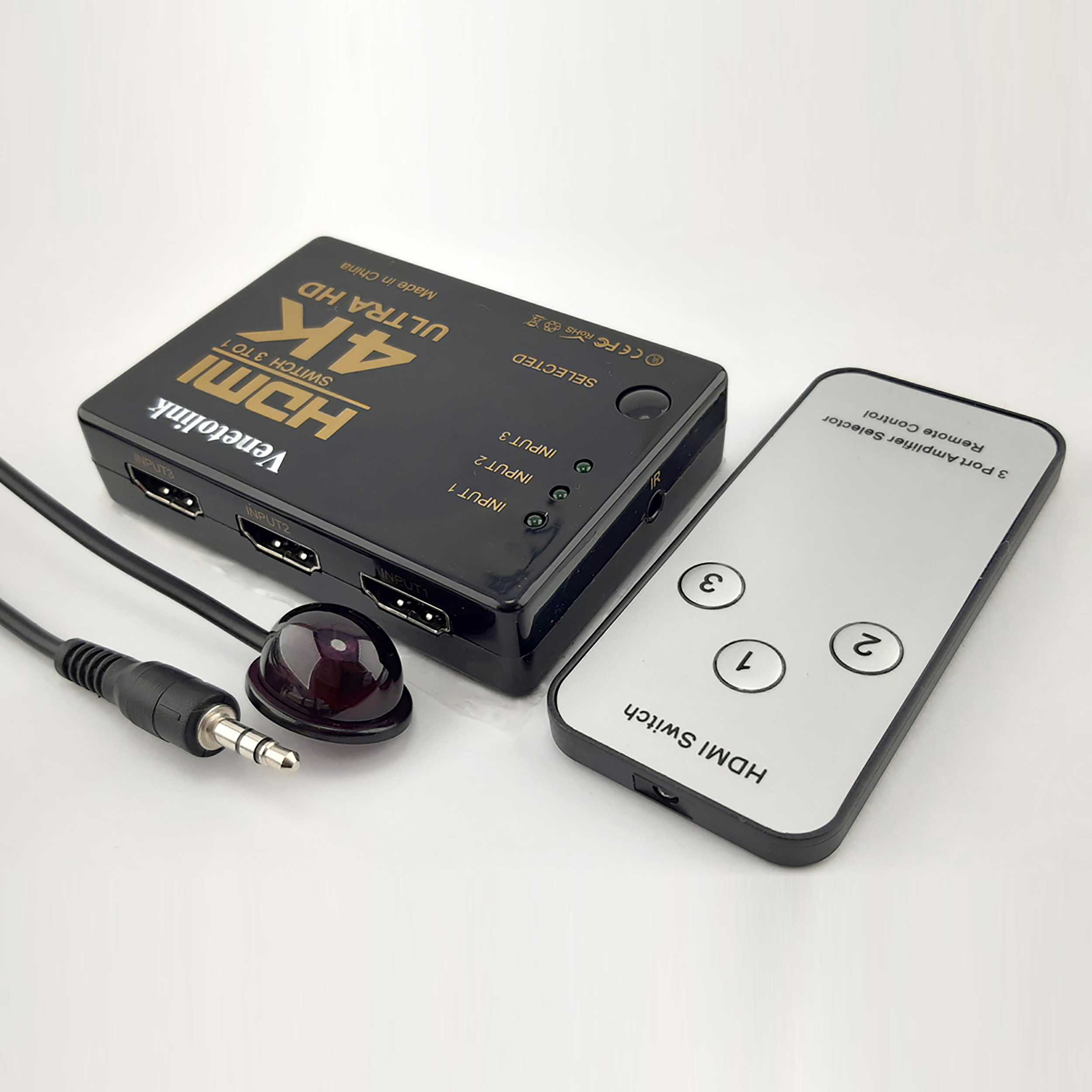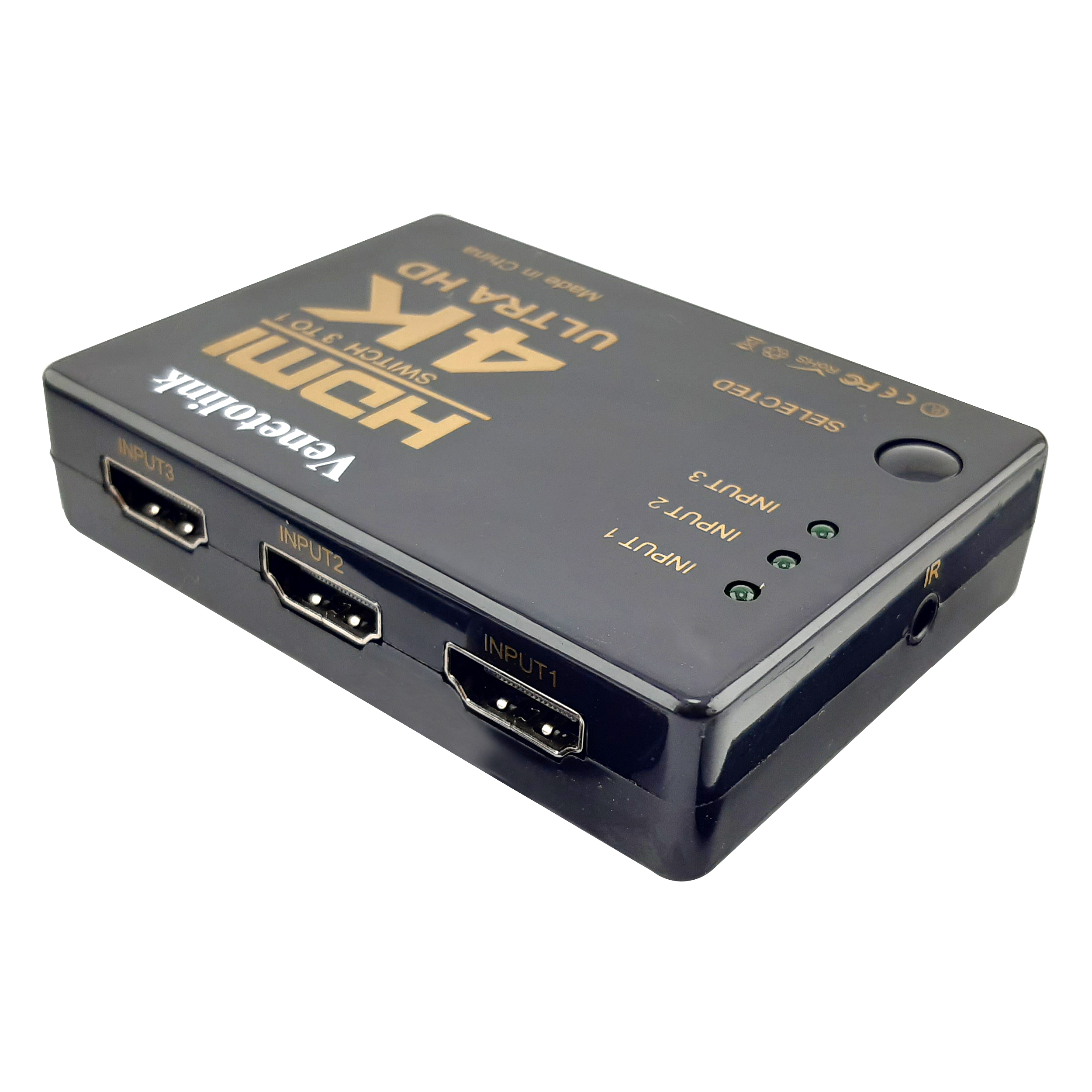سوییچ 3 پورت 4k UltraHD HDMI ونتولینک مدل UH-301 برای اشتراک گذاری چند سیستم پخش کننده ی تصویر به یک نمایشگر استفاده میشود. این محصول یکی از کاربردیترین اقلامی است که امروزه با پیشرفت تکنولوژی استفاده از آن نیز به نوعی الزام تبدیل گشته است. سوئیچ اچ دی ام آی 3 پورت زمانی مورد استفاده قرار میگیرد که بخواهید از چند دستگاه شبیه هم در موقع لزوم استفاده کنید، درواقع ما قصد داریم یکی از محصولات کاربردی و مورد استفاده در اکثر سازمانها و حتی شبکههای کوچک و یا حتی خانگی را به شما معرفی کنیم.این وسیله اتصال کننده دستگاهای پخش کننده به نمایشگر بصورت جداگانه است. بوسیله دکمه ی تعبیه شده روی دستگاه میتوان به صورت جداگانه پورت دستگاه را سوئیچ کرد.مدل UH-301 با پشتیبانی از بالاترین و بهترین کیفیت تصویری 4K Ulrta HD توانایی اتصال سه دستگاه گوناگون مانند پلی استیشن، رسیور، سینمای خانگی، گیرنده دیجیتال، دوربین، ایکس باکس ( باخروجی HDMI ) را به صورت همزمان به یک تلویزیون LCD یا LED دارای ورودی HDMI را دارد.