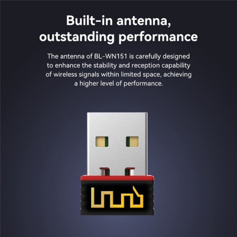 دانگل وای فای ال بی لینک مدل BL-WN151 New Cheap مدل ارتقا یافته بسیار محبوب BL-WN151 میباشد . این مدل به یک آنتن داخلی برای اتصال بهتر و با کیفیت تر نسبت به نسخه قبلی مجهز شده و همچنین چیپست آن نیز بروز شده است . دانگل وای فای USB جهت اتصال بی سیم به اینترنت بر روی رایانه می باشد، به راحتی با اتصال این دستگاه بر روی پورت USB رایانه خود میتوانید آنرا بصورت WiFi به مودم متصل کنید.لازم به ذکر است این محصول از ویندوز XP/7/8/8.1/10 جهت نصب و اتصال پشتیبانی می کند . برای دانلود درایور جهت ویندوزهای XP/7/8 …. به راحتی QR روی جعه دستگاه را اسکن کنید یا به سایت نوشته شده روی بسته بندی دستگاه مراجهه کنید .