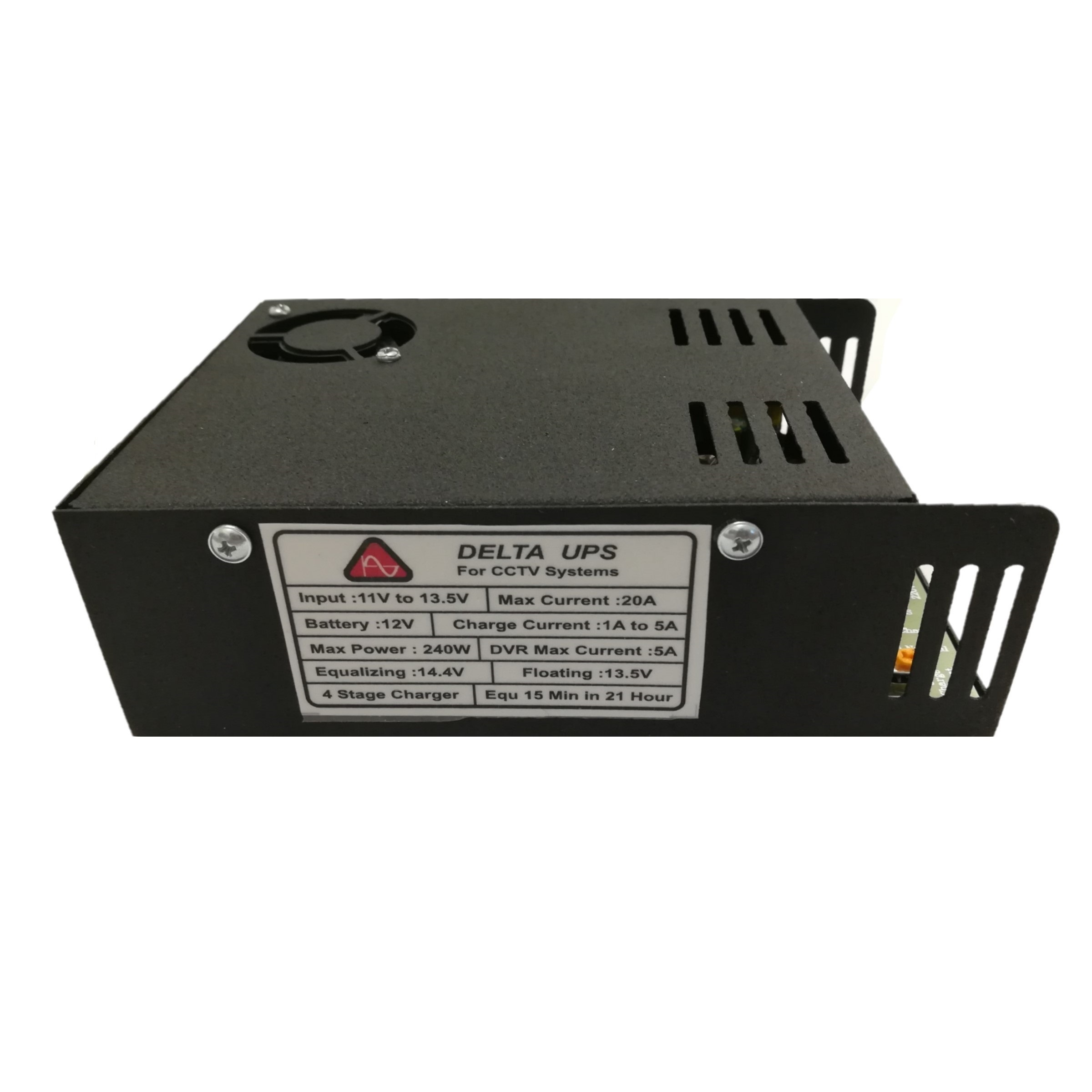 سیستم ups مخصوص دوربینهای مدار بسته در کنار منبع تغذیه دوربین ها و DVR سیستمهای نظارت تصویری قرار می گیرد و هنگام خاموشی برق ، به صورت آنلاین و کاملا بی وقفه انرژی ادامه به کار سیستمهای نظارت تصویری و دوربینهای مدار بسته را فراهم می آورد و در نتیجه در هنگام قطع برق نیز دوربینهای شما ضبط تصاویر را انجام می دهند و در هنگام وصل مجدد برق اصلی , این سیستم باتری نصب شده را شارژ کرده و برای خاموشی های آینده آماده نگه می دارد . از ویژگی های اختصاصی این یو پی اس میتوان به خروجی مخصوص DVR و مودم با استابلایزر داخلی اشاره داشت که دستگاه با اتکا به سیستم تشخیص خاموشی سریع خود به صورت آنلاین , بدون پرش تصویر و یا راه اندازی مجدد سیستم نظارتی در زمان قطعی برق انرژی مورد نیاز مجموعه را تامین می نماید و با قابلیت کنترل جریان شارژ توسط کاربر میتواند رنج وسیعی از باتری ها را ( 4.5 تا 100آمپر) پشتیبانی نماید و همچنین با بهره گیری از سیستم شارژر 4 مرحله ای پیشرفته ی خود و سیستم رسوب زدایی اتوماتیک در فواصل زمانی مختلف , باتری را رسوب زدایی کرده و در نتیجه حداکثر عمر باتری را برایتان به ارمغان می آورد. دستگاه دارای سیستم فن هوشمند می باشد که در مواقع مورد نیاز کارکرد دستگاه شروع به کار کرده و قطعات حداکثر عمر مفید را خواهند داشت و ال ای دی های نشانگر دستگاه همراه با هشدار های صوتی شما را از آخرین وضعیت دستگاه آگاه می سازد.
